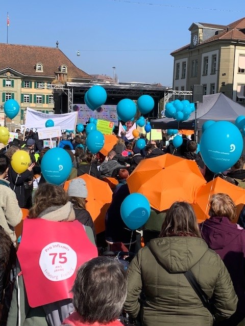 Weckruf an die Schweiz vom 09.03.2022: Im Zusammenhang mit dieser Überprüfung fand am 9. März eine Aktion von Inclusion Handicap und ihrer Mitgliederorganisationen in Bern statt, mit der die Selbstbestimmung und Inklusion von Menschen mit Behinderungen laut eingefordert wurde. Die Vereinigung Cerebral und zahlreiche andere Organisationen waren mit dabei. Mehr zum Weckruf lesen Sie hier.
