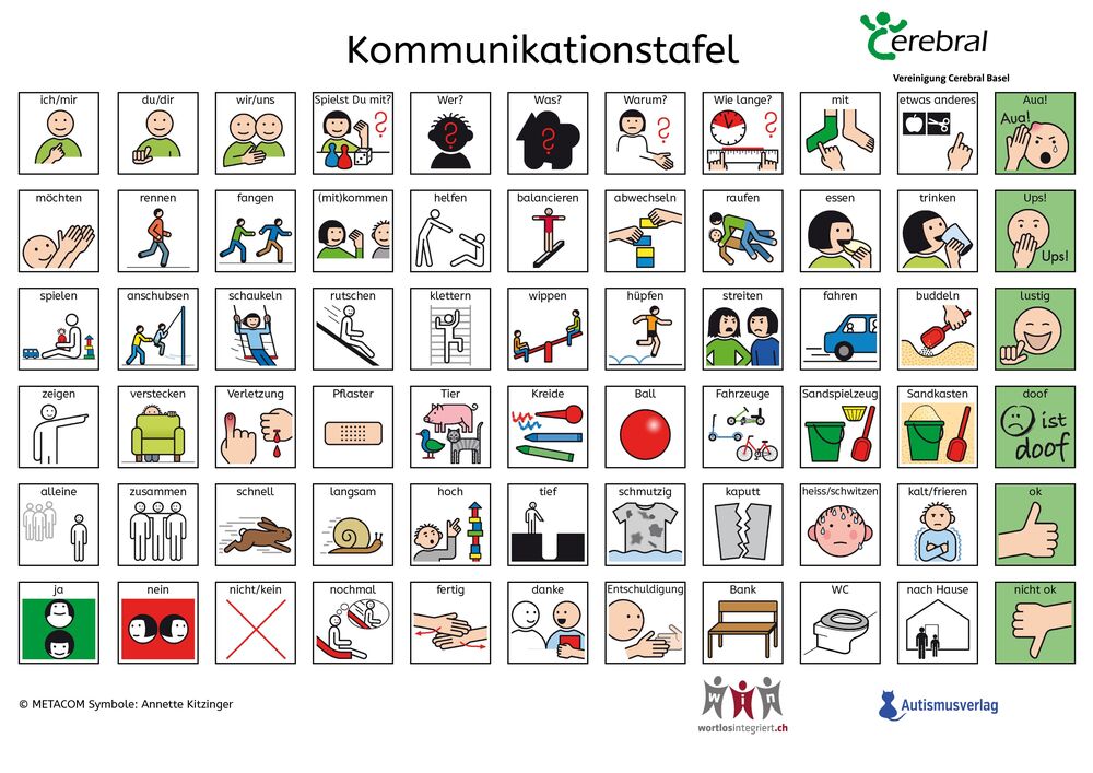 Einige Menschen mit Behinderungen verfügen über keine oder nur eine eingeschränkte Lautsprache. Diese haben es schwer, mit anderen Personen in Kontakt zu kommen, ihre Wünsche und Bedürfnisse mitzuteilen oder Fragen zu stellen. Die Unterstützte Kommunikation bietet Hilfsmittel an, um die Kommunikation zu erleichtern. Dazu gehören auch die Spielplatztafeln mit den 66 sogenannten Metacom Symbolen. Durch das Zeigen auf die Symbole können Wünsche ausgedrückt und Fragen gestellt werden. Personen mit eingeschränkter Lautsprache aber auch Mitmenschen mit geringen Deutschkenntnissen werden so Teil unserer Gesellschaft.