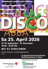 Die Vereinigung Cerebral Basel, das Jugendrotkreuz Basel und freiwillige Helfer:innen führen wieder eine DISCO für Menschen mit und ohne Behinderung…